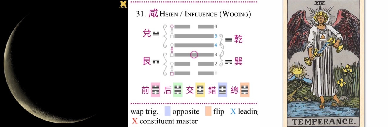 Hexagram 31. Hsien (Influence / Wooing): This speaks to the powerful, magnetic pull of the moment—an attraction and resonance between forces. We are being influenced by this immense cosmic gathering.
