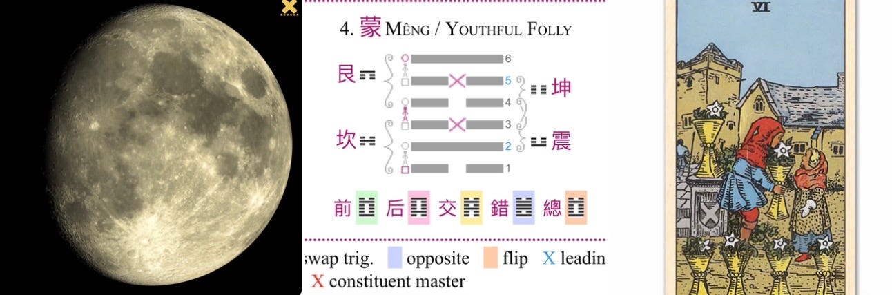 The Starting Point (Hexagram 4): We begin in a state of âYouthful Folly.â This is not a judgment, but a description of a state of not-knowing. The oracle advises that the âyouthâ must seek the teacher, not the other way around. Today, you are the youth. The universe is the teacher. An open, humble, and questioning mind is required.
