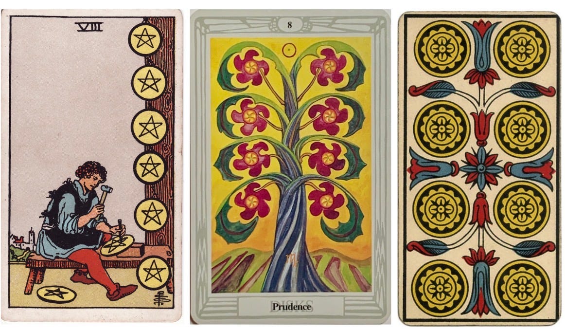 This seems paradoxical, but it is the key to mastery. The Piscean flood can lead to aimless drifting and spiritual bypassing. The Eight of Pentacles is the antidote. It instructs us to take the new influx of intuition, compassion, and spiritual insight and apply it to our craft. The “work on what has been spoiled” is not a grand, dramatic act; it is the humble, day-by-day work of the apprentice. Today, you are being called to become an apprentice to your own soul, diligently learning to work with the new, subtle material of your own heart.